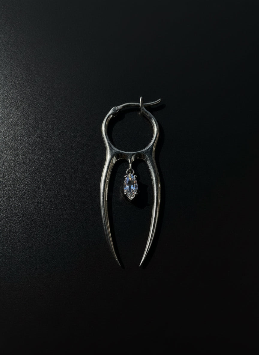 925 silver, 1,2 carat marquise cut lab grown white sapphire with signature creole hinged closure.